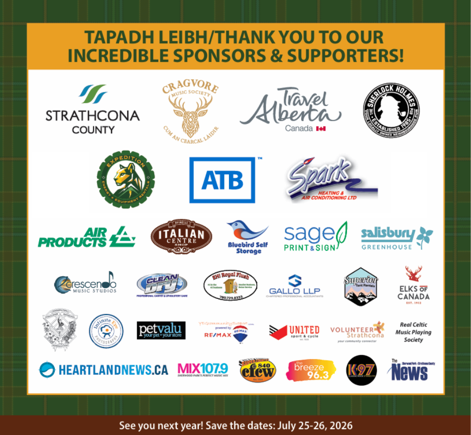The Sherwood Park Highland Gathering is an outdoor event held on the Salisbury High School Athletic Fields in Broadmoor Lake Park. Located in the heart of Sherwood Park, we strive to host an accessible event for all.